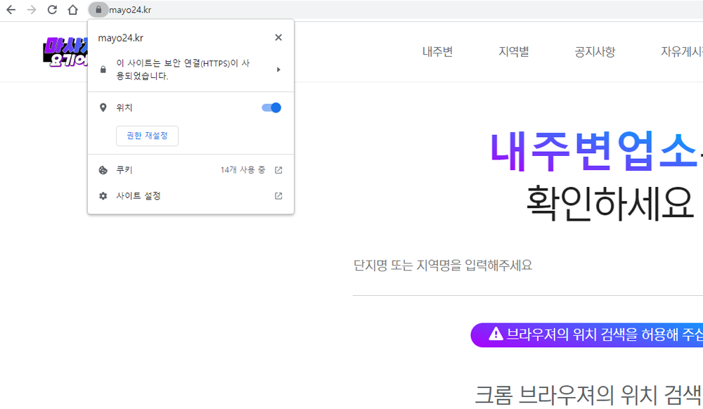 크롬 브라우져의 위치 검색 허용